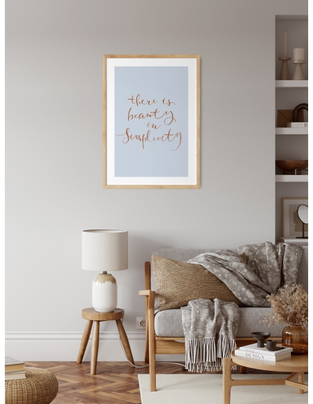 Diseño gráfico Frase motivadora 2 "There is beauty in simplicity". Decora tus paredes con láminas de frases motivadoras y carteles que puedes encontrar en ciudades del mundo. Cuadro con diseño moderno que queda perfecto en la mayoría de hogares.