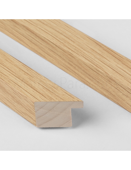 Marco de madera, tipo taco de 2.5cm de frontal, en color roble para foto de 20x20cm.