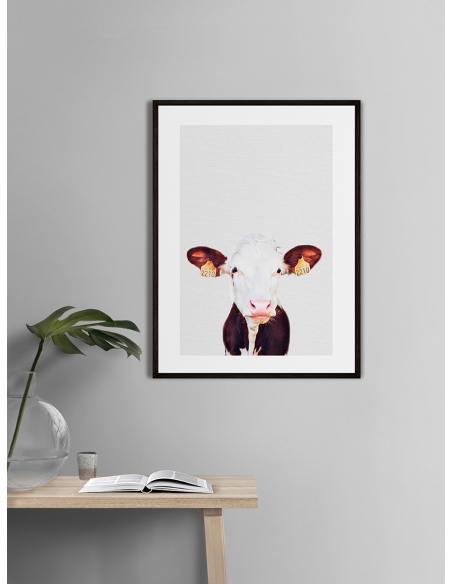 Diseño gráfico de Vaca. Lámina moderna de animales con diseños bonitos y divertidos . Decora con este póster de temática animal.