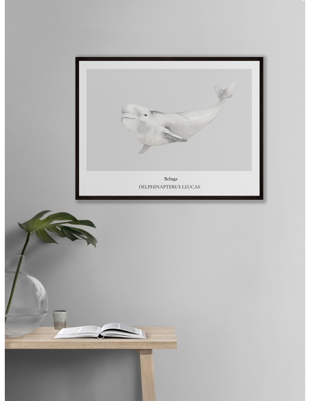 Diseño gráfico de una Beluga. Lámina moderna de animales con diseños bonitos y divertidos . Decora con este póster de temática animal.