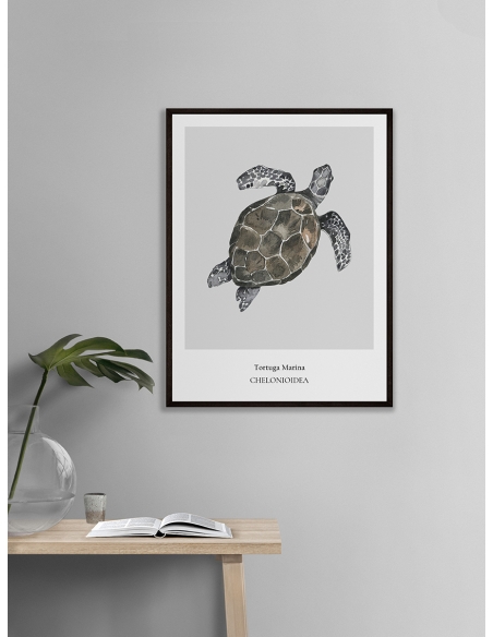 Diseño gráfico de Tortuga Marina. Lámina moderna de animales con diseños bonitos y divertidos . Decora con este póster de temática animal.