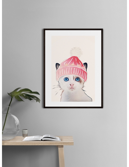 Diseño gráfico de Gato Invierno. Lámina moderna de animales con diseños bonitos y divertidos . Decora con este póster de temática animal.