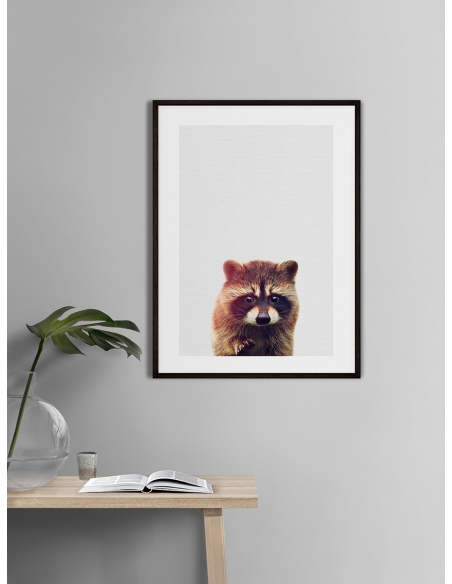 Diseño gráfico de Mapache. Lámina moderna de animales con diseños bonitos y divertidos . Decora con este póster de temática animal.