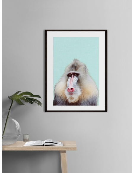 Diseño gráfico de Mono. Lámina moderna de animales con diseños bonitos y divertidos . Decora con este póster de temática animal.