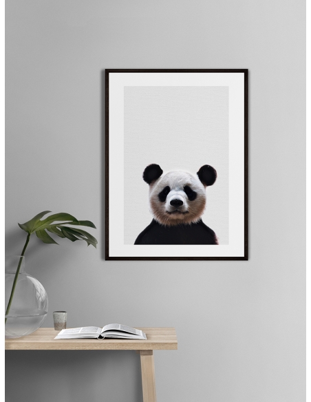 Diseño gráfico de Oso Panda. Lámina moderna de animales con diseños bonitos y divertidos . Decora con este póster de temática animal.