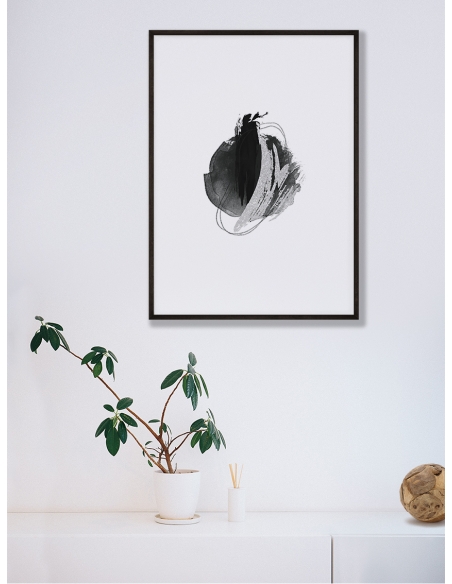 Diseño gráfico Abstracto Mancha Negra. Lámina moderna de arte abstracto en tonos grises que trasmiten elegancia. Decora con este póster y dale un toque sofisticado a tus paredes.