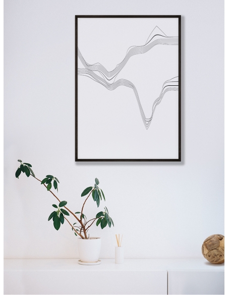 Diseño gráfico Abstracto Ondas Blanco y Negro. Lámina moderna de arte abstracto en tonos grises que trasmiten elegancia. Decora con este póster y dale un toque sofisticado a tus paredes.