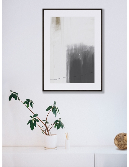 Diseño gráfico Abstracto Pincelada Gris. Lámina moderna de arte abstracto en tonos grises que trasmiten elegancia. Decora con este póster y dale un toque sofisticado a tus paredes.