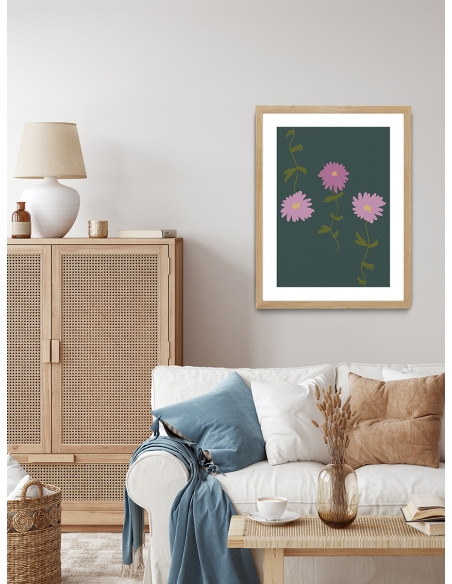 Diseño gráfico de Flores Rosas. Si te gusta la botánica esta lámina es perfecta para ti. Decora con este póster y aporta un aire fresco a tu estancia.