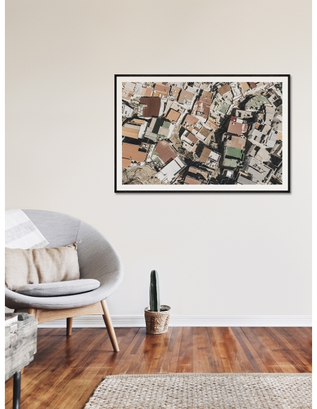 Diseño gráfico Pueblo desde aire. Si te gusta visitar pueblos y ciudades, esta lámina es perfecta para ti. Cuadro con diseño moderno que queda perfecto en la mayoría de hogares, decora tus paredes con este póster decorativo.