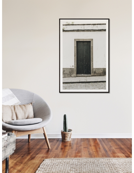 Diseño gráfico Puerta negra. Si te gusta visitar pueblos y ciudades, esta lámina es perfecta para ti. Cuadro con diseño moderno que queda perfecto en la mayoría de hogares, decora tus paredes con este póster decorativo.