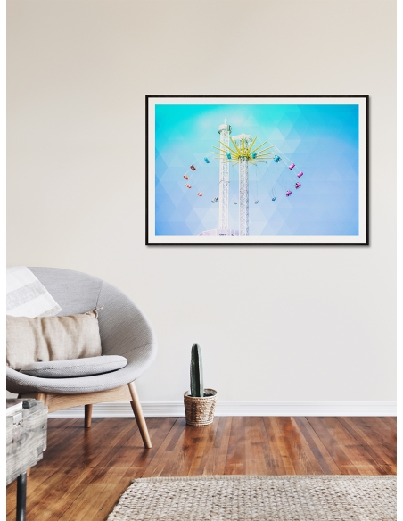 Diseño gráfico Tiovivio. Si te gusta visitar pueblos y ciudades, esta lámina es perfecta para ti. Cuadro con diseño moderno que queda perfecto en la mayoría de hogares, decora tus paredes con este póster decorativo.