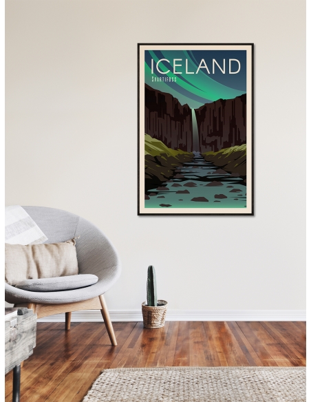 Ilustración, diseño gráfico de Iceland. Si te gusta Islandia esta lámina es perfecta para ti. Cuadro con diseño moderno que queda perfecto en la mayoría de hogares, decora tus paredes con este póster decorativo.