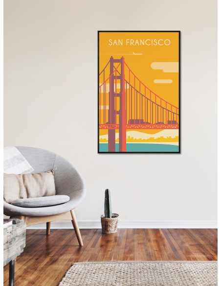 Ilustración, diseño gráfico de San Francisco. Si te gusta San Francisco esta lámina es perfecta para ti. Cuadro con diseño moderno que queda perfecto en la mayoría de hogares, decora tus paredes con este póster decorativo.