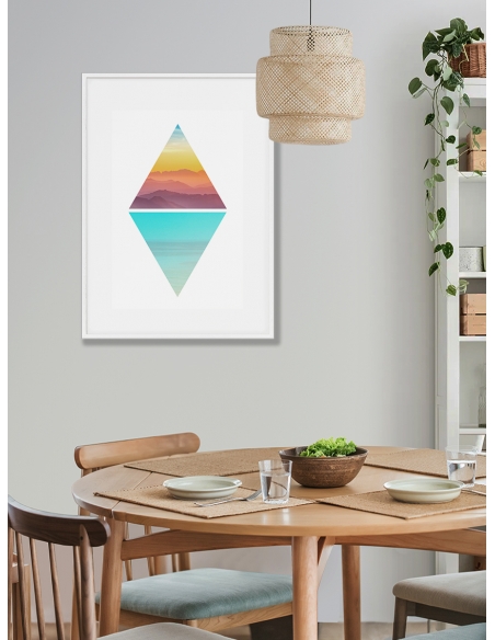 Diseño gráfico Puesta de Sol Rombo. Si te gusta la naturaleza, esta lámina es perfecta para ti. Decora tus paredes con este poster decorativo.