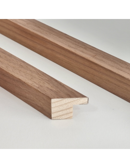 Marco de madera con chapa natural sin barnizar, tipo taco de 1.5cms de frontal y 1.7m de profundidad. Disponible en Maple, Nogal, Haya y Roble.