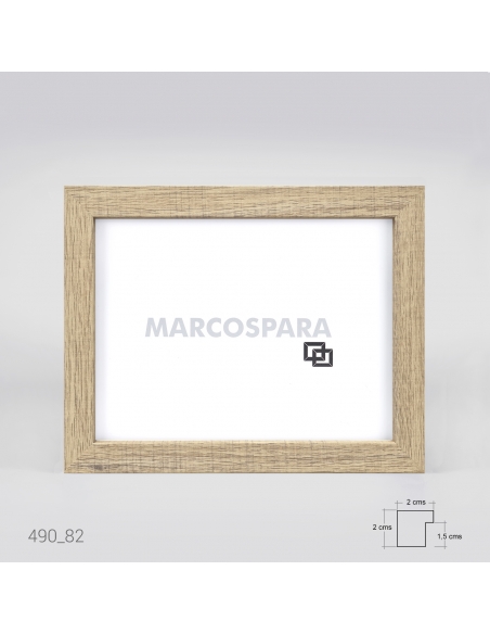 Marco de madera tintadas o barnizadas tipo taco de 2cms de frontal y 2cm de profundidad. Disponible en Blanco, Negro y varios tonos Naturales.
