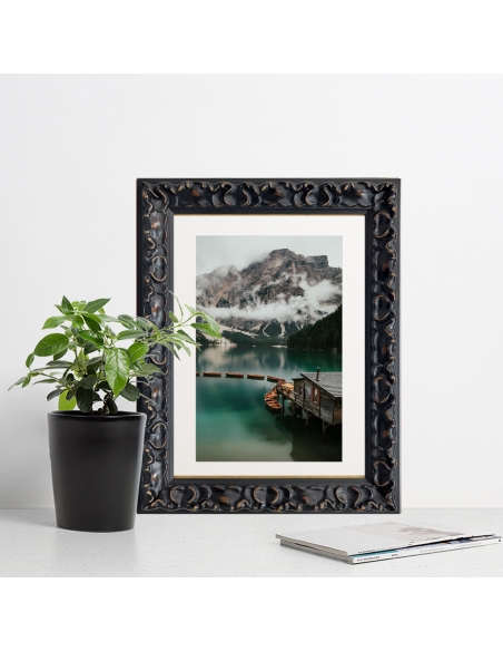 Marco de madera de 2.5ms de frontal y 2.5cm de profundidad. Disponible en Oro, Plata y Negro