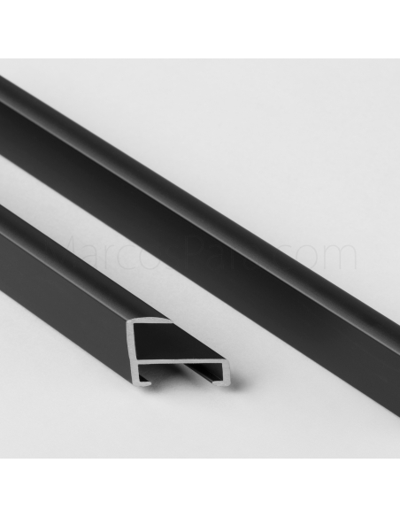 Moldura de Aluminio de 0,8cms, disponible en 9 colores diferentes: Plata, Marrón, Bronce, Blanco, Azul, Rojo, Verde, Negro Lacado y Negro Mate.