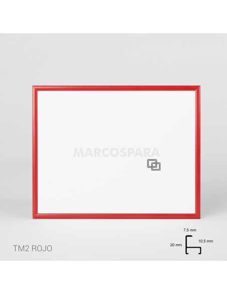 Moldura de Aluminio de 0,8cms, disponible en 9 colores diferentes: Plata, Marrón, Bronce, Blanco, Azul, Rojo, Verde, Negro Lacado y Negro Mate.