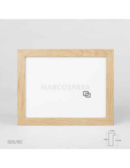 Moldura de Madera tipo caja en color Roble de 2cms de frontal y 3cms de profundidad.