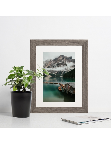 Marco de madera nórdico tipo caja de 2cms de frontal y 4cm de profundidad, disponible en Nogal, Gris Claro, Gris Oscuro y Hueso.