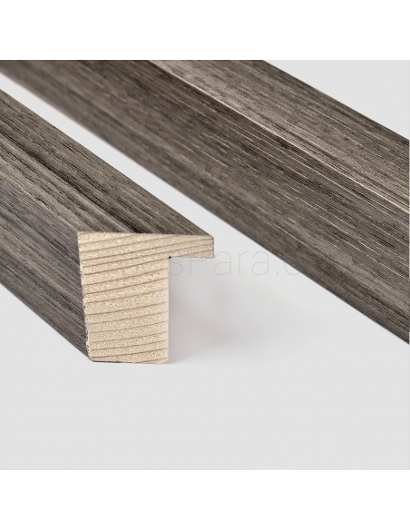 Moldura de madera nórdico tipo caja de 2cms de frontal y 4cm de profundidad, disponible en Nogal, Gris Claro, Gris Oscuro y Hueso.