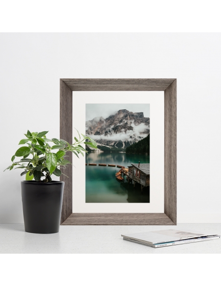 Marco de madera nórdico inclinada de 2cms de frontal, disponible en Nogal, Gris Claro, Gris Oscuro y Hueso.