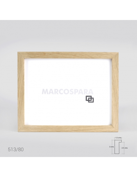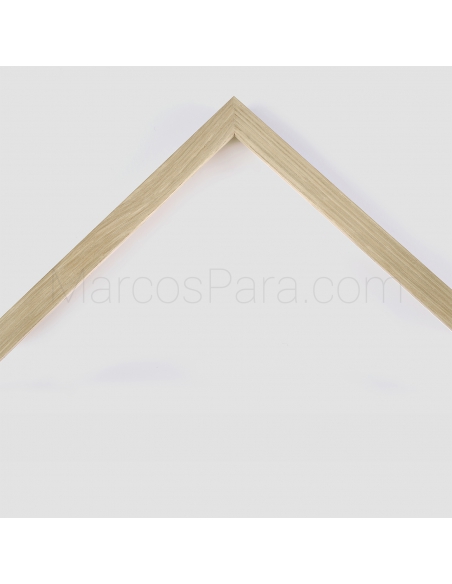 Marco de madera con chapa natural sin barnizar, tipo caja de 1.5cms de frontal y 3cm de profundidad. Disponible en Maple, Nogal, Haya y Roble.