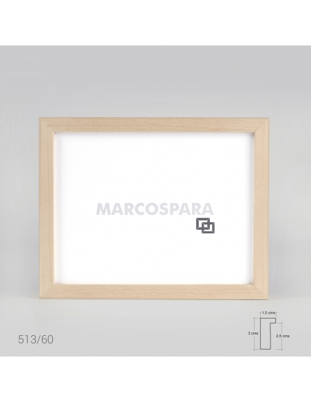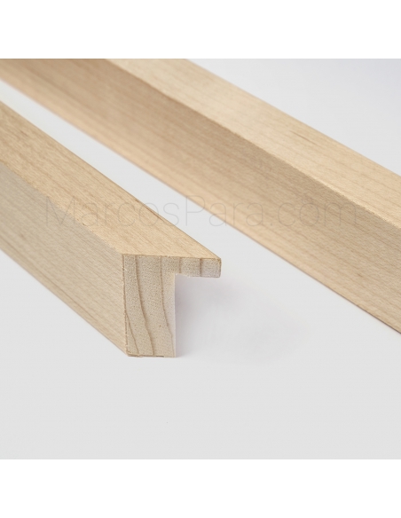 Marco de madera con chapa natural sin barnizar, tipo caja de 1.5cms de frontal y 3cm de profundidad. Disponible en Maple, Nogal, Haya y Roble.
