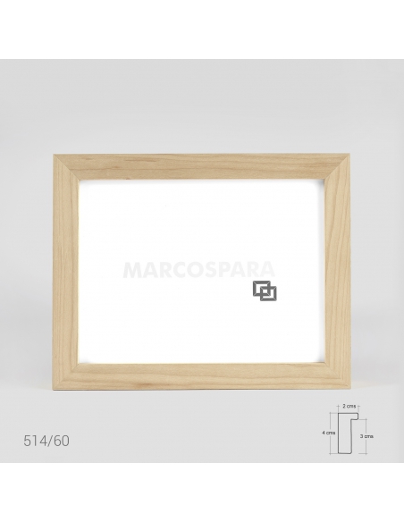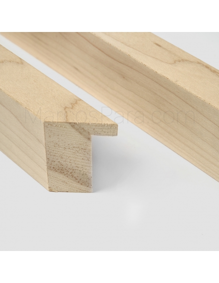 Marco de madera con chapa natural sin barnizar, tipo caja de 2cms de frontal y 4cm de profundidad. Disponible en Maple, Nogal, Haya y Roble.