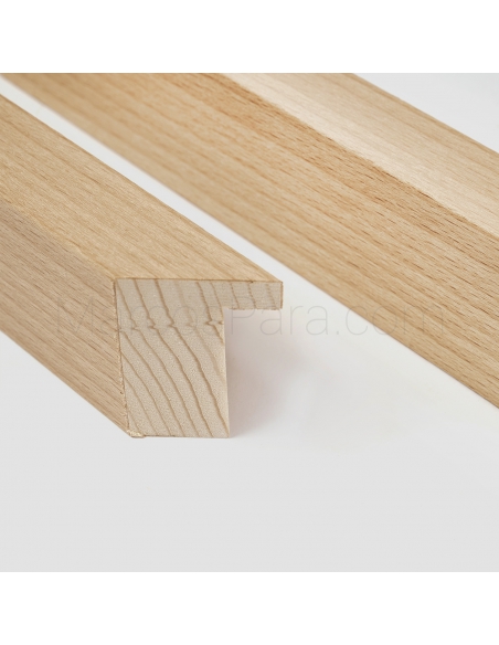 Marco de madera con chapa natural sin barnizar, tipo caja de 2cms de frontal y 4cm de profundidad. Disponible en Maple, Nogal, Haya y Roble.