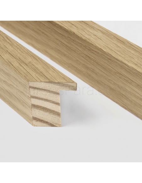 Marco de madera con chapa natural sin barnizar, tipo caja de 2cms de frontal y 4cm de profundidad. Disponible en Maple, Nogal, Haya y Roble.