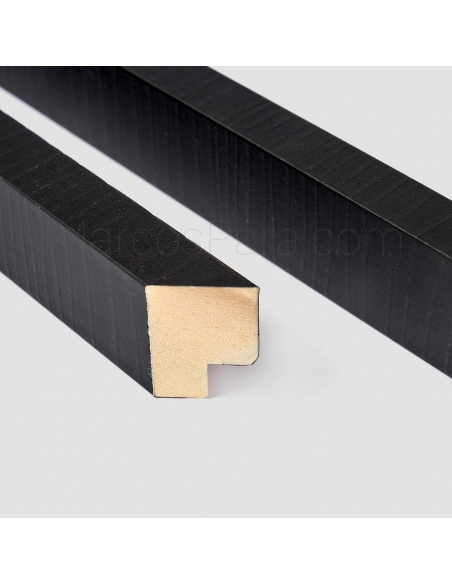 Marco de madera tipo caja con galce al fondo de 1.7cms de frontal y 3cm de profundidad. Disponible en negro gravado y blanco gravado