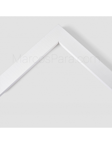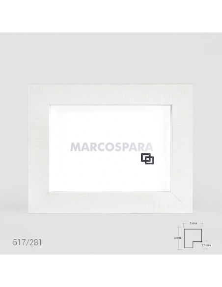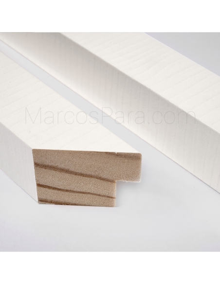 Marco de madera tipo taco con galce al fondo de 3cms de frontal y 3cm de profundidad. Disponible en negro gravado y blanco gravado.