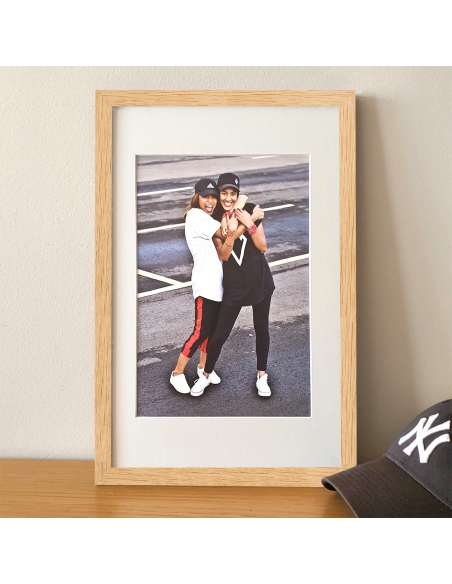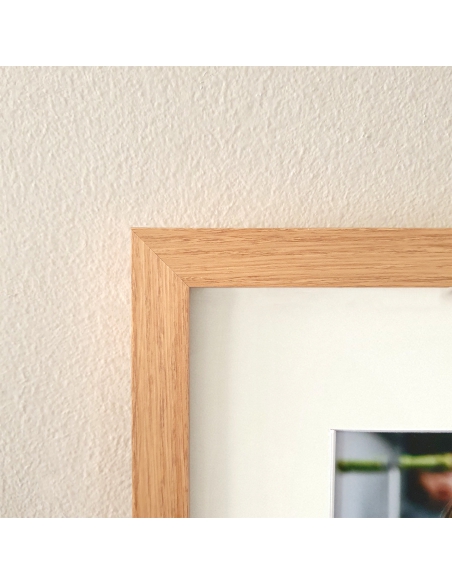 Crea tu marco personalizado con nuestra serie BASIC. Sube tu foto y te la imprimimos en calidad fotográfica, la enmarcamos con un passe-partout en un marco de 1.7cm de ancho con metacrilato y trasera de cartón pluma. Elige entre las combinaciones disponibles y selecciona el color del marco: roble, blanco o negro mate. Te lo enviamos listo para colgar