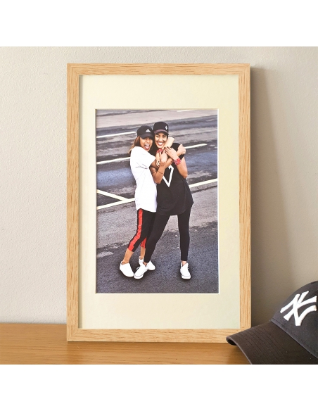 Crea tu marco personalizado con nuestra serie BASIC. Sube tu foto y te la imprimimos en calidad fotográfica, la enmarcamos con un passe-partout en un marco de 1.7cm de ancho con metacrilato y  trasera de cartón pluma. Elige entre las combinaciones disponibles y selecciona el color del marco: roble, blanco o negro mate. Te lo enviamos listo para colgar