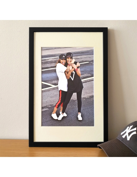 Te enviamos el marco Basic listo para colgar, ideal para regalar y sorprender a quien quieras. También te lo podemos imprimir a cualquier otra medida que necesites.