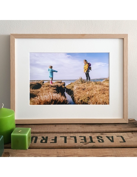 Crea tu marco personalizado con nuestra serie NORDIC. Sube tu foto y te la imprimimos en calidad fotográfica, la enmarcamos con un passe-partout en un marco de 1.5cm de ancho con metacrilato y trasera de cartón pluma. Elige entre las combinaciones disponibles y selecciona el color del marco: maple, haya o roble. Te lo enviamos listo para colgar.