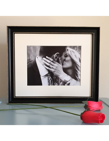 Crea tu marco personalizado con nuestra serie CLASIC. Sube tu foto y te la imprimimos en calidad fotográfica, la enmarcamos con un passe-partout en un marco de 2cm de ancho color negro, con frontal de metacrilato y trasera de cartón pluma. Elige entre las combinaciones disponibles. Te lo enviamos listo para colgar.