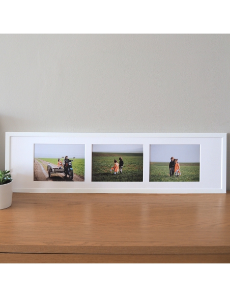* Combinación: 26x55cm con paspartú crema oscuro, para 3 fotografías en medida 15x20cm.