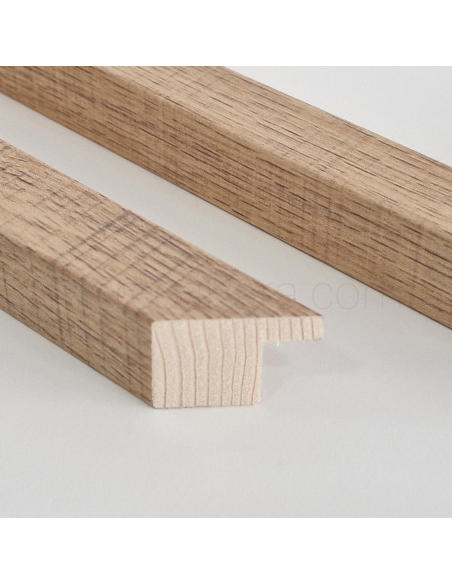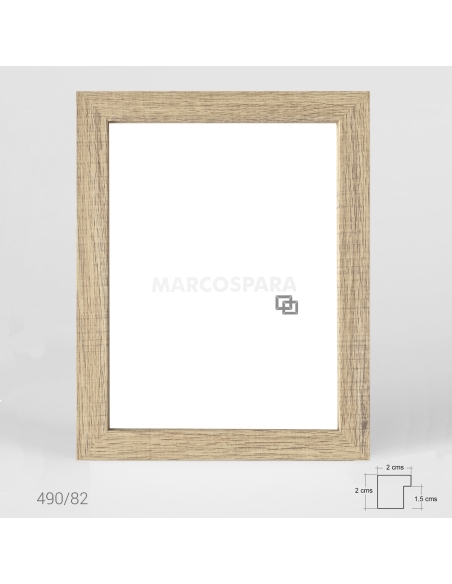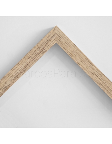 Marco de madera tipo taco de 2cms de frontal y 2cm de profundidad, disponible en color roble, haya, blanco y negro.