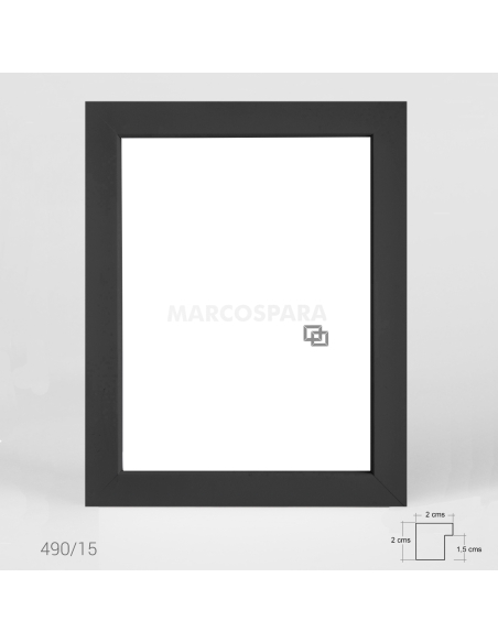 Marco de madera tipo taco de 2cms de frontal y 2cm de profundidad, disponible en color roble, haya, blanco y negro.
