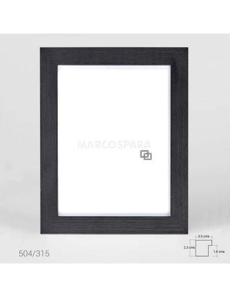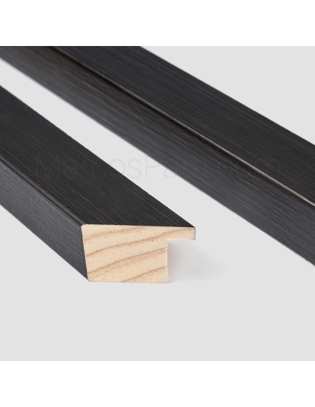 Marco de madera tipo taco de 2.5ms de frontal y 2.3cm de profundidad, disponible en color natural, nogal. blanco y negro poro marcado.