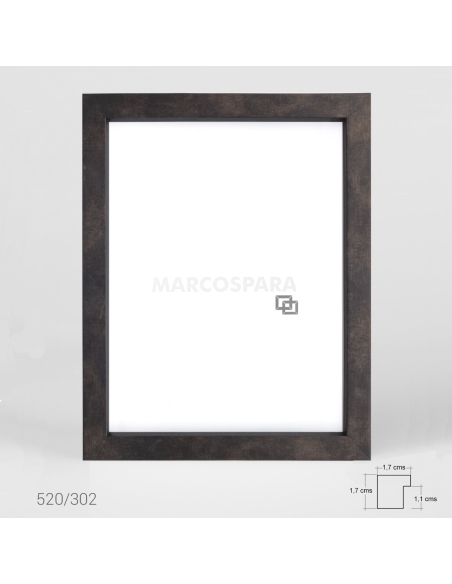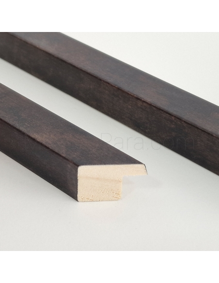 Marco de madera tipo taco de 1.7cms de frontal y 1.7cm de profundidad, disponible en color oro, plata y nogal envejecido.