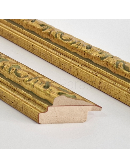 Marco de madera en oro, plata y negro de 2.5cm de frontal.