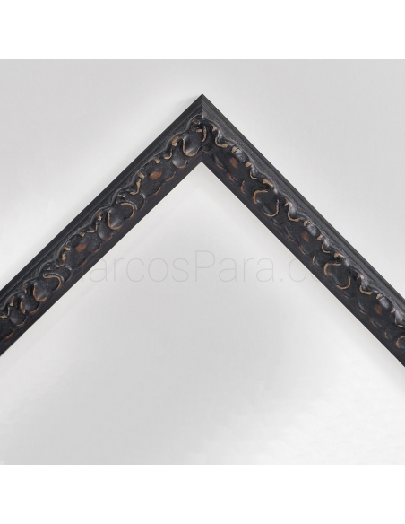 Marco de madera en oro, plata y negro de 2.5cm de frontal.