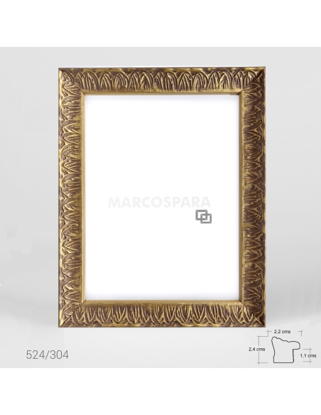 Marco de madera de 2.2cms de frontal y 2.4cm de profundidad, disponible en color oro y plata.