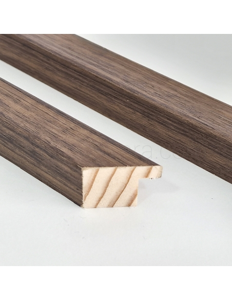 Marco de madera tipo taco de 1.8ms de frontal y 1.8cm de profundidad, disponible en color Natural, Nogal, Gris, Nogal Claro y Blanco.