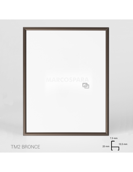 Marco de aluminio de 8mm de frontal y 2cm de profundidad, disponible en oro, plata, bronce, rojo, azul, verde, marrón, blanco y negro.